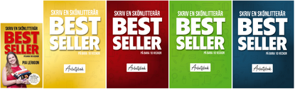 Skrivhandboken Skriv en skönlitterär bestseller + arbetsboken (finns i fyra olika omslag) används som kurslitteratur under eventet.