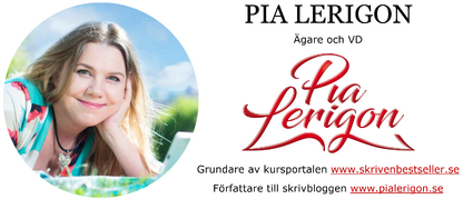 Jag heter Pia Lerigon och driver kursportalen Skriv en bestseller, bloggen pialerigon.se som vunnit Svenska skrivbloggpriset för Sveriges bästa skrivblogg och podden Skrivdrömmar som kom tvåa i samma tävling för Sveriges bästa skrivpodcast.